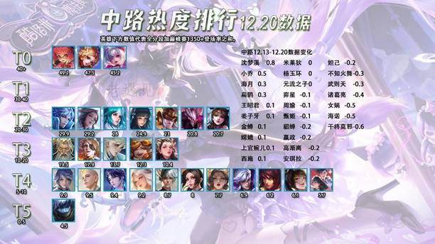 12.21全英雄出场率排行,猴子数据惨淡,哪吒依然坚挺?
