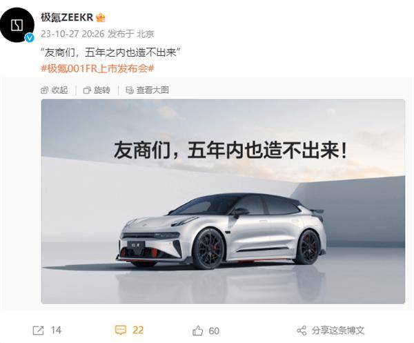 7月5日消息,作为极氪打造的超强性能车,拥有四电机的001 FR在2023年曾大放异彩,以至于官方喊出了“友商们5年内也造不出来”的口号。