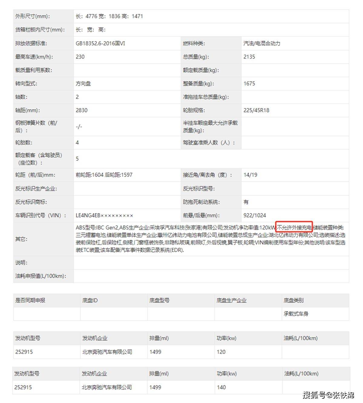 动力配置方面,此次申报了两种动力,都是1.5T发动机,最大功率分别为120千瓦和140千瓦,匹配的是亿纬动力提供的三元锂电池,但是为非插电式混动。