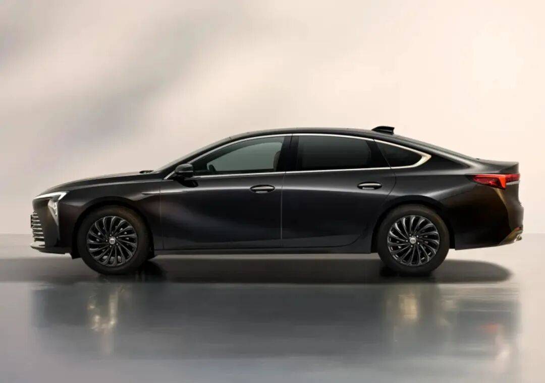 先看2026款别克君越。这次一共推出两款车型,新车延续了现款的 design language,前脸还是那张辨识度很高的霸气中网,配上L形大灯,气场依然在线。尺寸没变,长宽高4996/1866/1472mm,轴距2905mm,接近5米的车长摆在那,无论是停在路边还是跑在路上,都有种B+级轿车该有的稳重感。车尾是贯穿式尾灯,镀铬条横贯其中,双边两出的排气也保留了,细节上没偷懒。
