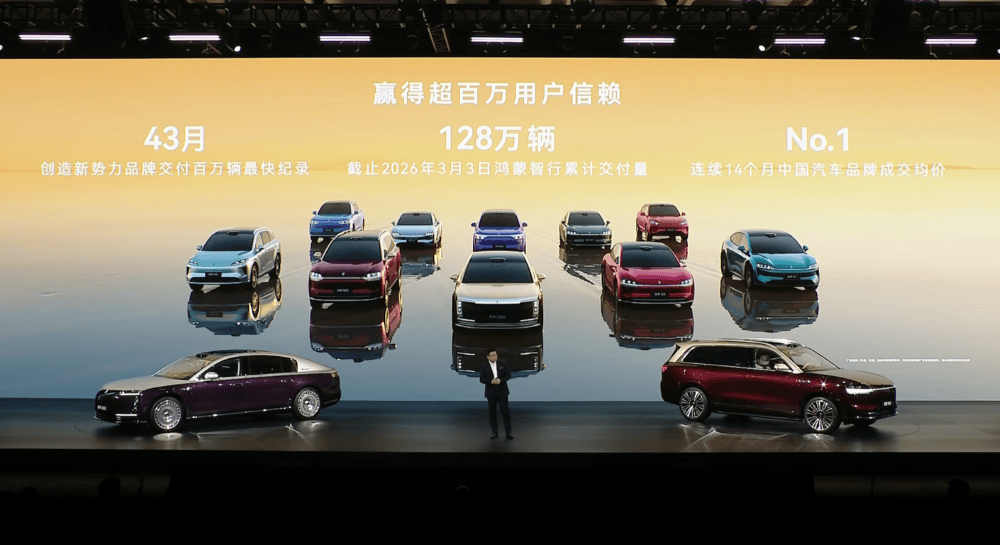 截至到今年3月3日,鸿蒙智行的累计交付量已经达到了128万辆,并且连续14个月成为中国汽车品牌中成交价最高的品牌。