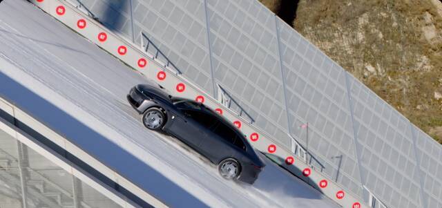 发布会前,它完成了行业首个双人冲坡挑战,登顶国家跳台滑雪中心“雪如意”。85米的垂直落差、37.1度的最大坡度,在冰雪湿滑路面上的极限爬坡,证明了这套三电机四驱系统绝非花架子。