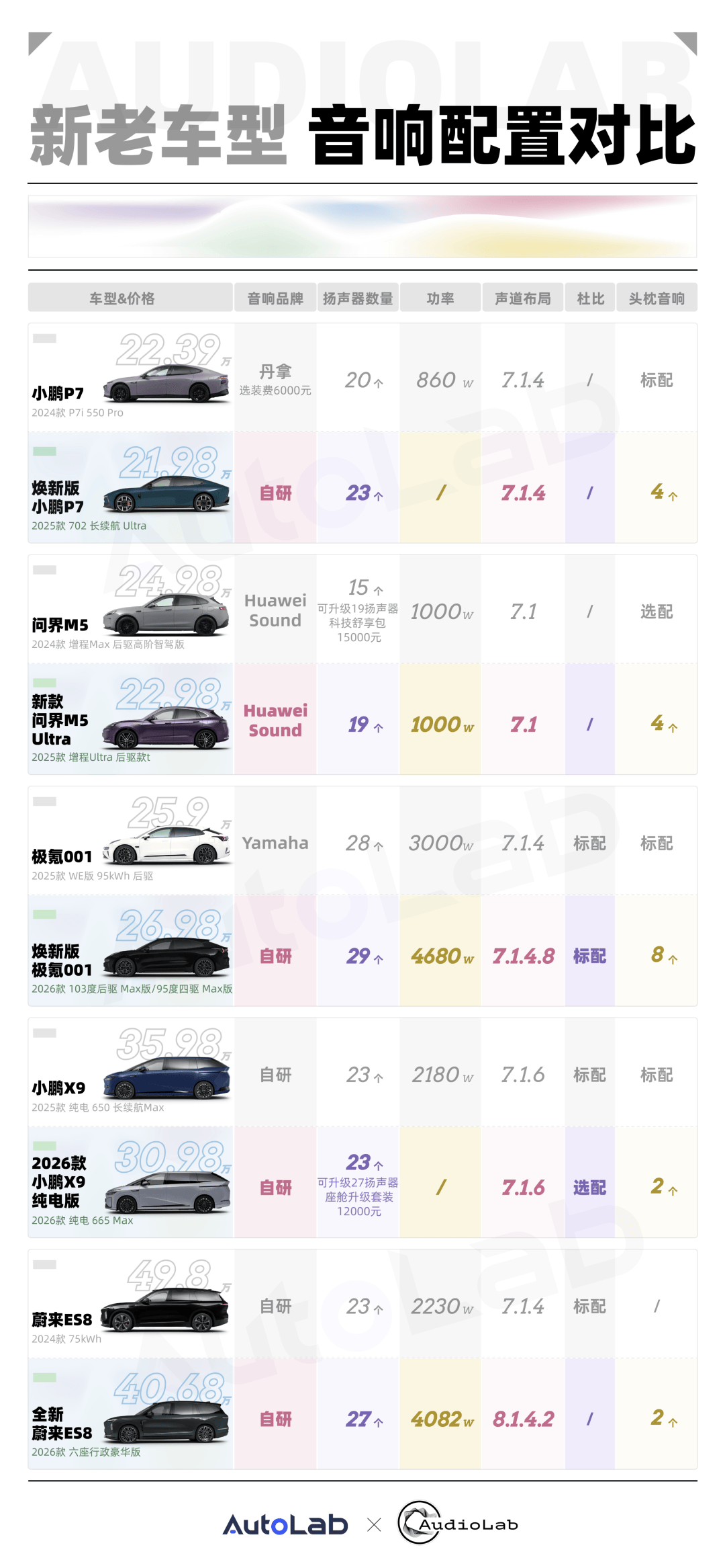 我们也整理了几款热门焕新车型的音响配置变化,并与老款车型进行对比,方便大家更直观地看清背后的差异。