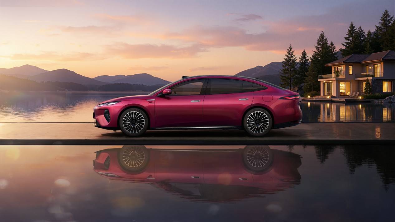 侧面来看,新车侧面造型较为舒展,流畅的车身线条兼顾低风阻系数和用车安全性。此外,新车还配备了19寸多辐式轮毂,豪华感十足。车尾部分,新车采用贯穿式尾灯组设计,内部融入了细长的灯组造型,点亮后极具辨识度。车身尺寸方面,新车长宽高分别为5150/1999/1505mm,轴距为3030mm。