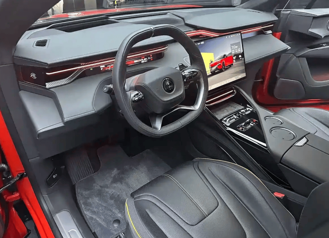 内饰也延续了Eletre那套思路,科技感和运动感都在线。运动方向盘、狭长仪表、大HUD、悬浮中控屏,再加上后排电调和功能控制屏,说明它并没有把自己做成一台神经质的纯驾驶玩具。它知道买这种车的人,很多时候既要自己开得爽,也要让后排坐得住。超跑SUV之所以能卖,不就是因为它一边装狠,一边装体面。