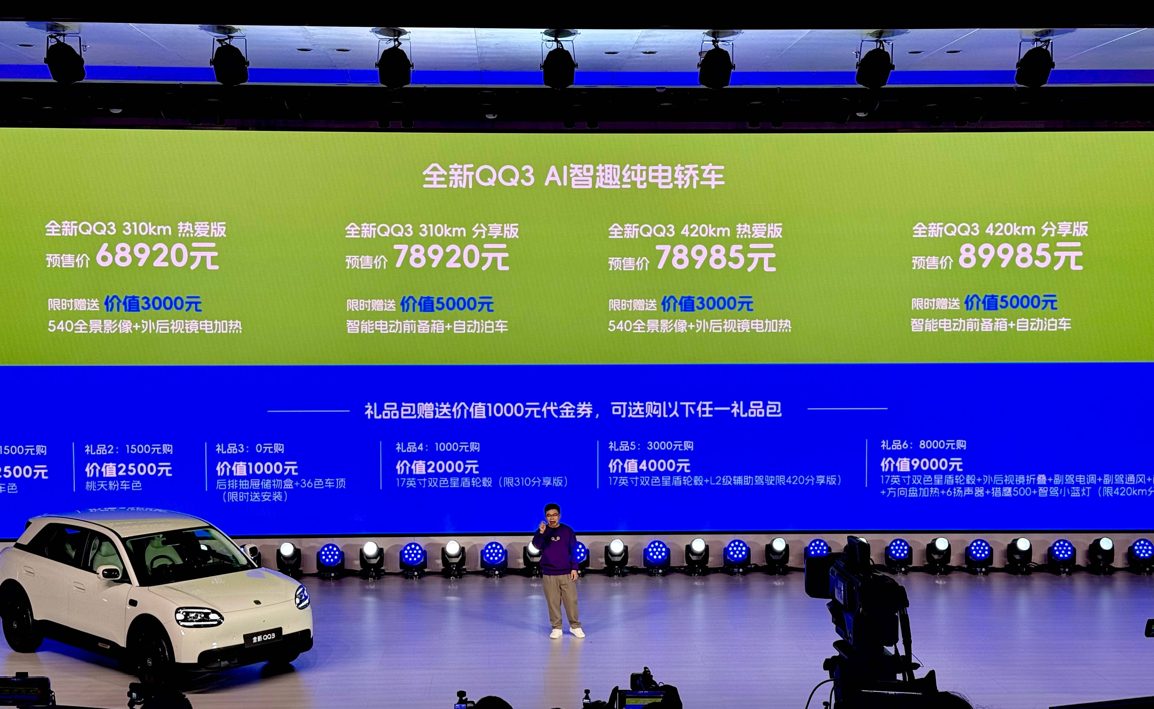 奇瑞全新QQ3预售价正式公布,6.88万-9.79万元的预售价结合越级智能配置,重塑A0级纯电市场格局。定位AI智趣纯电轿车,直接对标比亚迪海豚、吉利星愿等竞品。支付99元订金可抵扣999元车款,享优先交付权、三电终身质保等福利。