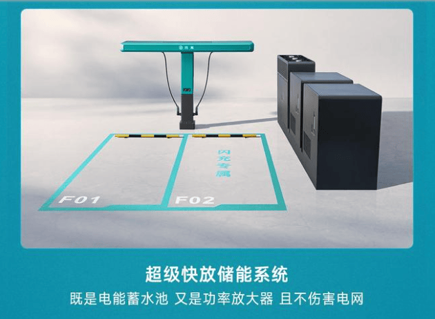 再来看第二个问题:闪充桩会冲击电网,对国网不友好?比亚迪同样给出了一个对社会友好的解决方案。他们为每个闪充桩都配备了一套超级快放的储能系统,这套系统就像一个智能的“蓄水池”和“放大器”——在电网负荷低的时候,它静静地存电;当多辆车同时需要大功率闪充时,它又能瞬间放电,把储存的能量叠加到电网输出上,让每把枪都能稳定输出最大功率。