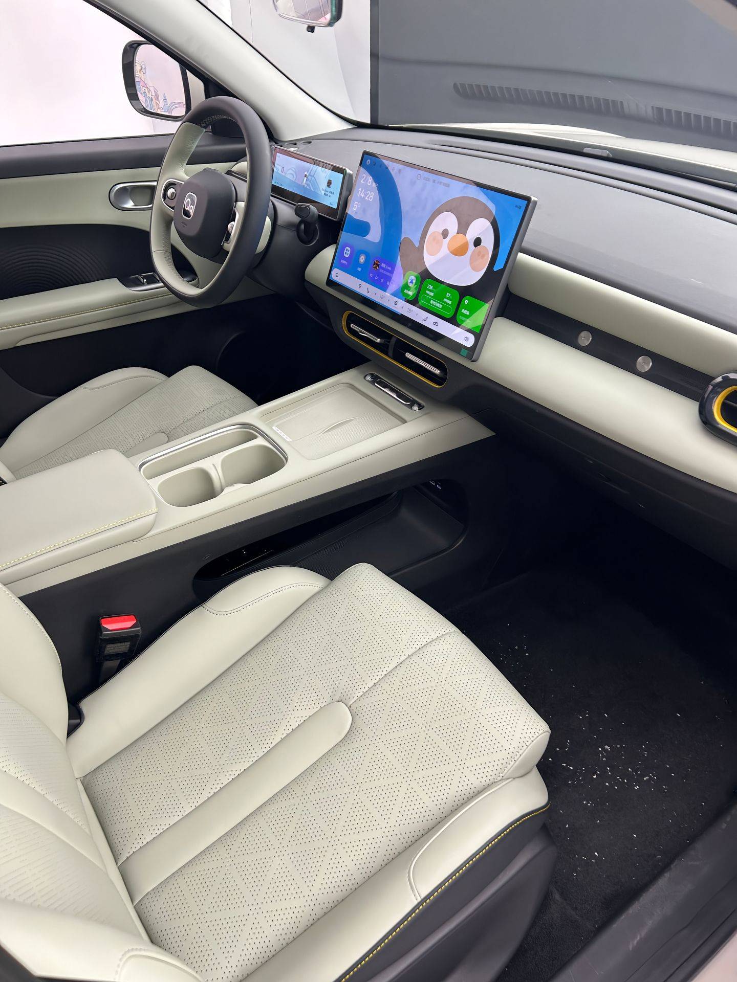 车内也有质感黑、丛林绿两种风格,而大量椭圆形元素,与Q萌外观相得益彰。同时还将配备15.6英寸2.5K悬浮式中控屏和8.8英寸液晶仪表,并搭载高通骁龙8155芯片加持的AI灵犀智舱,采用潮趣HMI交互设计,支持Carmind智能体、小憩/哨兵/宠物/露营等六种场景模式、车外喊话等功能。同时还可选装猎鹰500智能驾驶辅助系统,可实现高速NOA、全场景自动泊车辅助等功能。