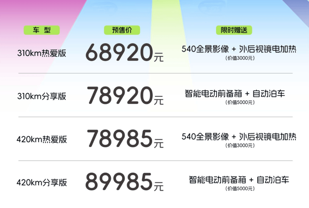 2026年3月10日,奇瑞全新QQ3 正式开启预售,共推出4款配置,预售价区间6.892万至8.9985万元,精准切入入门级纯电市场